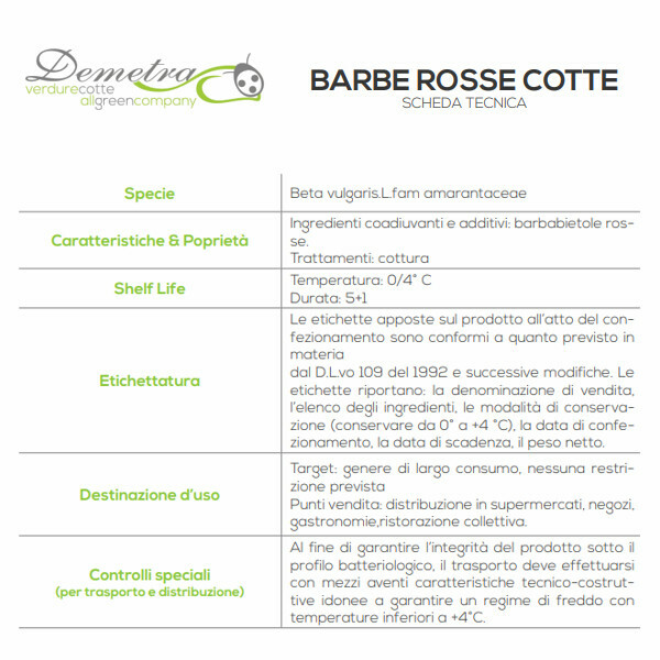 Ingredienti coadiuvanti e additivi: barbabietole rosse.