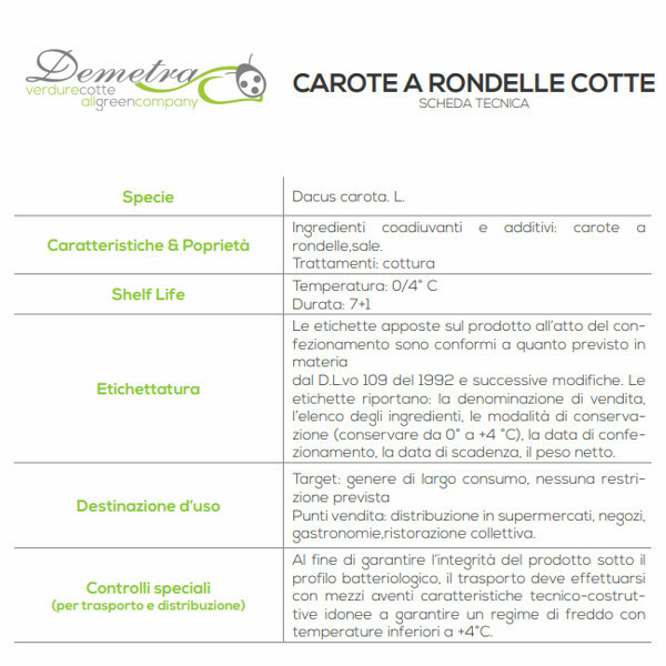 Ingredienti coadiuvanti e additivi: carote a rondelle, sale.