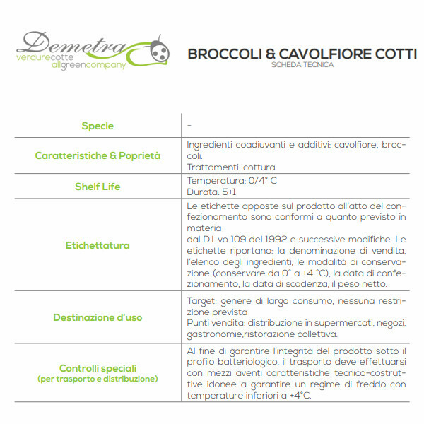 Ingredienti coadiuvanti e additivi: cavolfiore, broccoli.