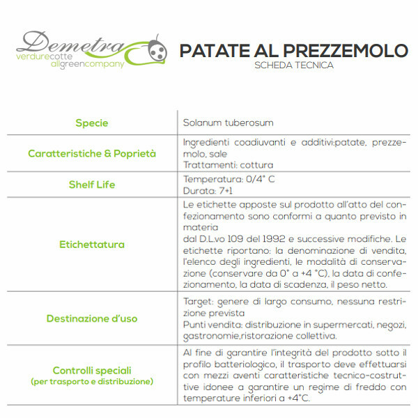 Ingredienti coadiuvanti e additivi: patate, prezzemolo, sale